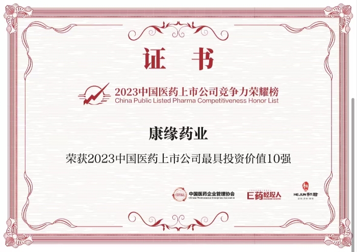 During the conference, the 2023 "Top 100 Chinese Pharmaceutical Innovation Enterprises" series of rankings, the "50 Best Practice Cases of Traditional Chinese Medicine Inheritance and Innovation in 2023" and other rankings, organized and selected by the China Pharmaceutical Enterprise Management Association and Healthcare Executive, were officially released. Kanion Pharmaceutical Industry was on the list of "Top 100 Chinese Pharmaceutical Innovation Enterprises" and "Top 10 Most Investment-worthy Chinese Pharmaceutical Listed Enterprises", and was awarded the title of "Best Practice Case of Traditional Chinese Medicine Inheritance and Innovation".
