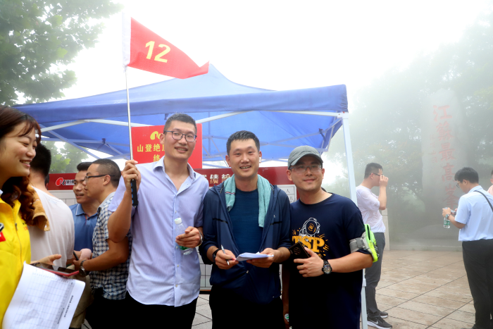 时至下午4时15分,扬泰通省公司的许斌斌第一个冲上顶峰,上海二省公司的李保全获得第二,重庆省公司的何洪亮斩获第三,获得“攀登者”称号,得到大家热情祝贺。经过一轮轮紧张激烈的冲刺,多支队伍成功登顶,会师“江苏最高峰”,每组前十名登顶队员成绩纳入各自所在团体的总分。