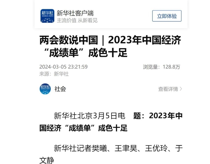 新华社——《两会数说中国|2023年中国经济“成绩单”成色十足》