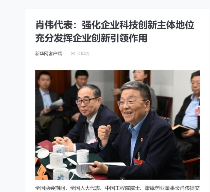 新华网发表文章《肖伟代表:强化企业科技创新主体地位 充分发挥企业创新引领作用》。在报道中,肖伟代表建议,整合集聚各类创新资源要素,强化企业在产学研中的主导地位,对做出重大产业科技创新贡献的企业应给予更多激励支持,提高企业自身创新能力,充分发挥企业创新引领作用。