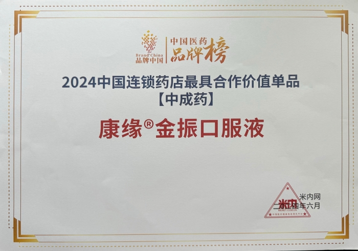 会议期间,2024“中国连锁药店最具合作价值单品”榜单成功发布。康缘®金振口服液凭借优越的产品品质、潜在的商业价值和优秀的成长性脱颖而出,成功荣获“中国连锁药店最具合作价值单品”。